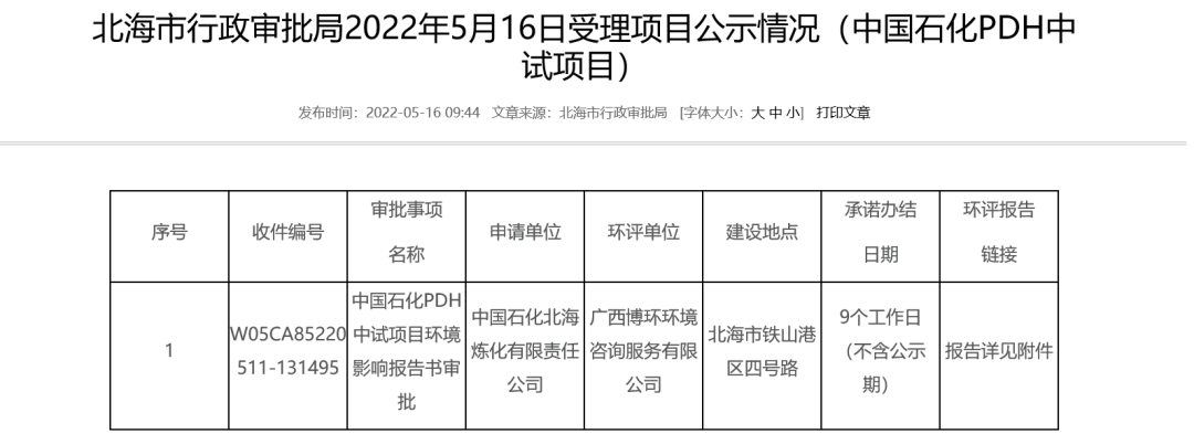 为充分利用北海炼化丙烷原料优势,中国石化将 PDH 中试项目交由北海炼化进行承建,拟建试验规模为年产丙烯 1000 吨,采用 SRIPT 丙烷脱氢技术进行中试研究对于中石化 PDH 成套技术开发,利用中试试验装置验证催化剂及反应器可靠性。采用 SRIPT 丙烷脱氢技术进行中试研究对于中石化 PDH 成套技术开发,打破国外 PDH 技术垄断,形成中石化自主知识产权 PDH 技术和未来北海炼化 PDH 装置建设都有重大战略意义和现实意义,有利于行业未来发展。